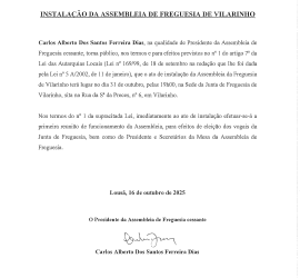 Edital – Instalação da Assembleia de Freguesia de Vilarinho
